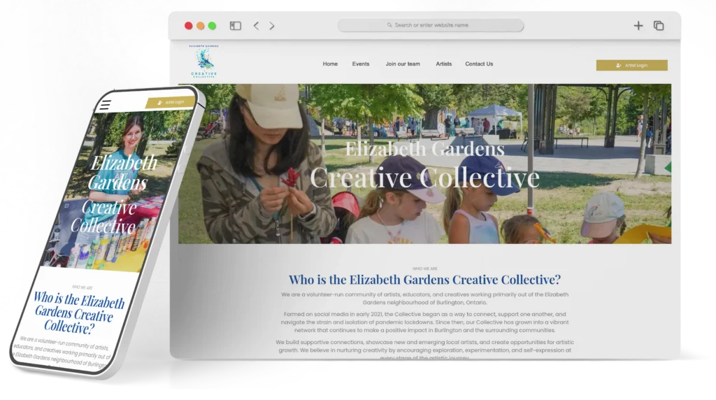 Complete rebuild of a legacy HTML site into a membership-based artist platform with profiles, artwork uploads, event calendar and social media integration.